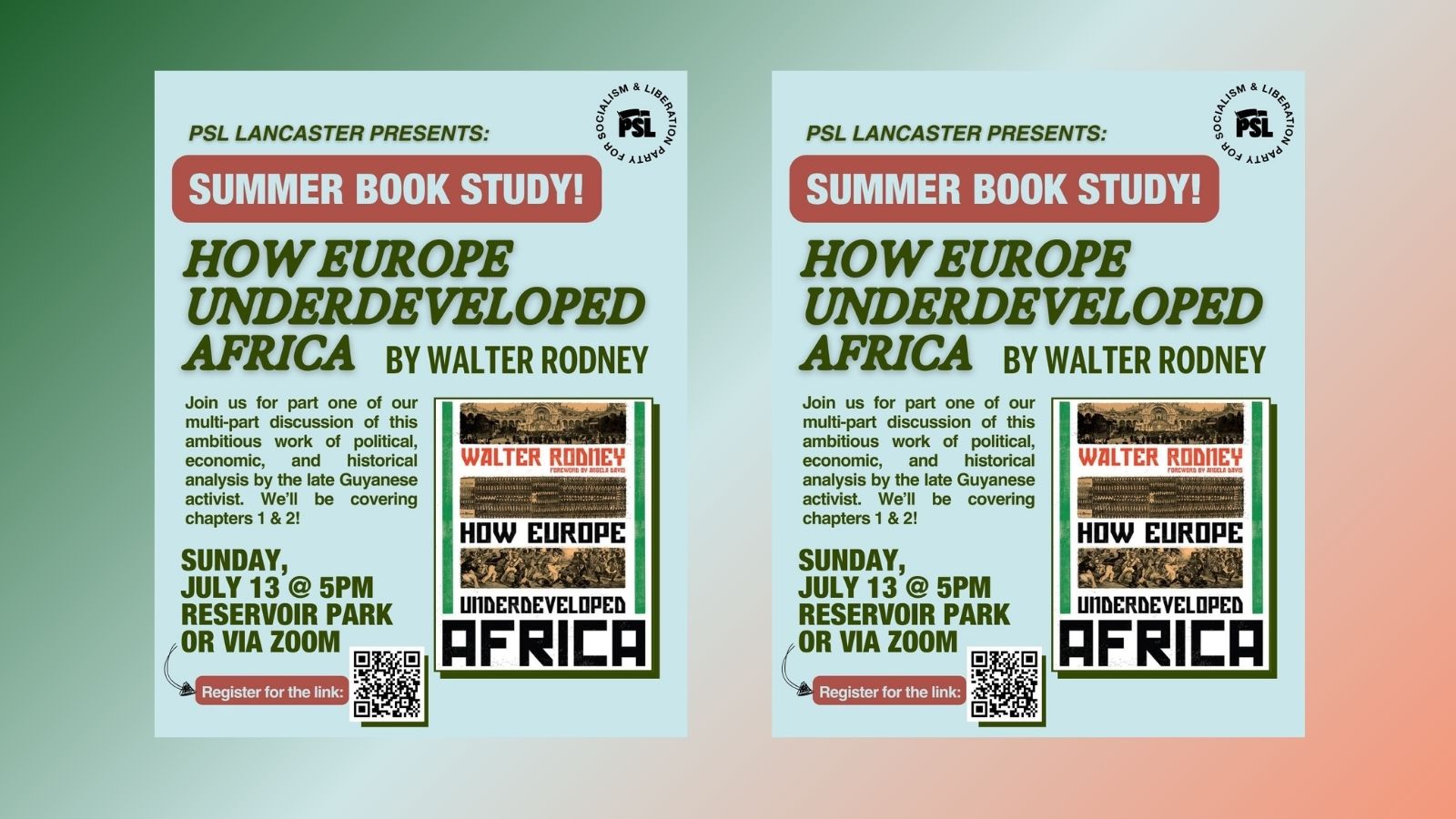 Join us in-person OR virtually on Sunday 7/13 at 5pm for the first part of our Summer Book Study. We’ll be covering chapters 1 & 2 from Walter Rodney’s ambitious masterwork: How Europe Underdeveloped Africa!